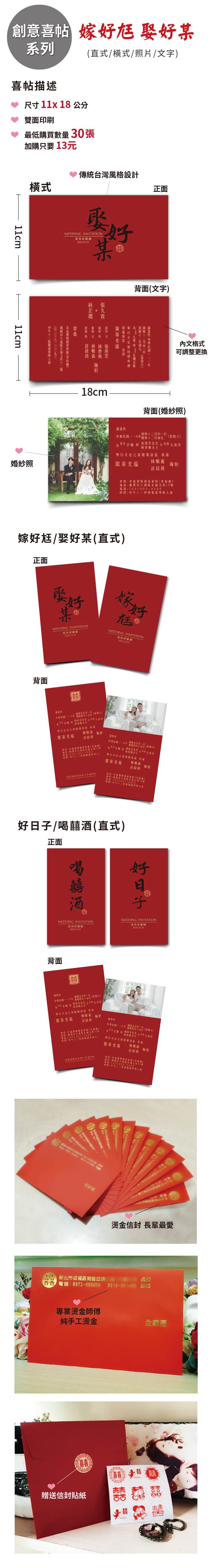 台灣嫁娶風格喜帖(嫁好尪/娶好某/好日子/喝喜酒)